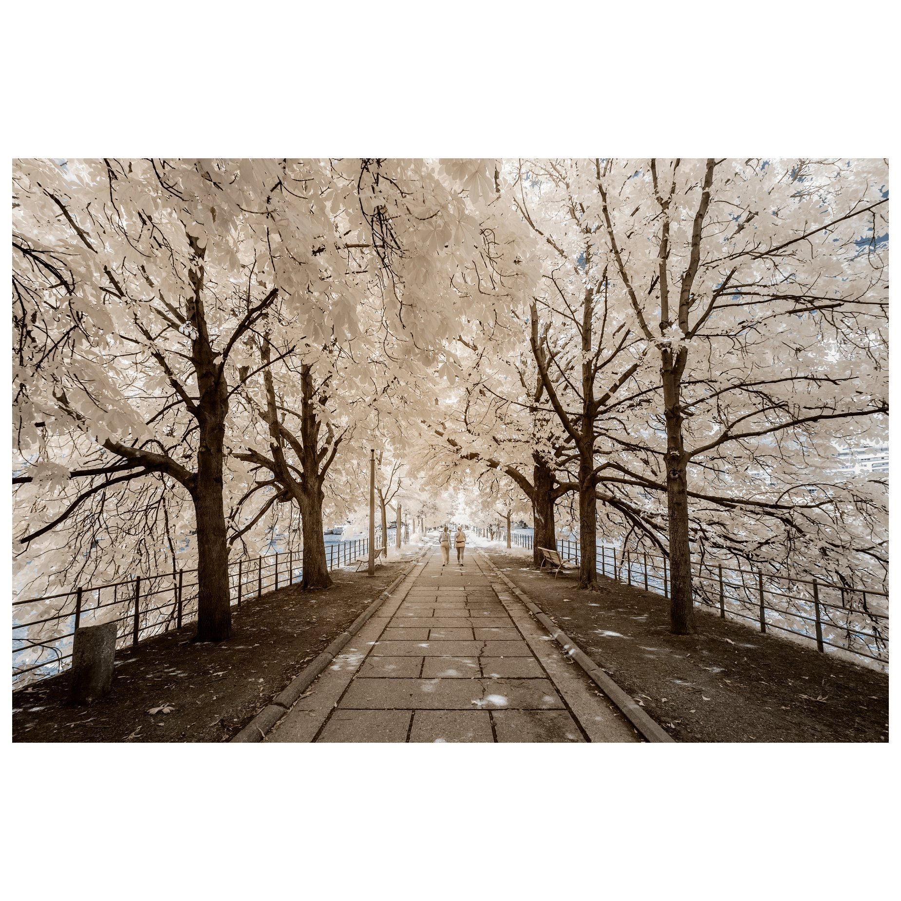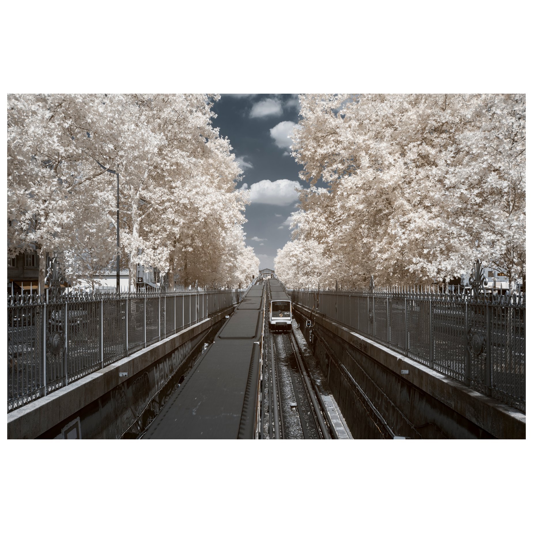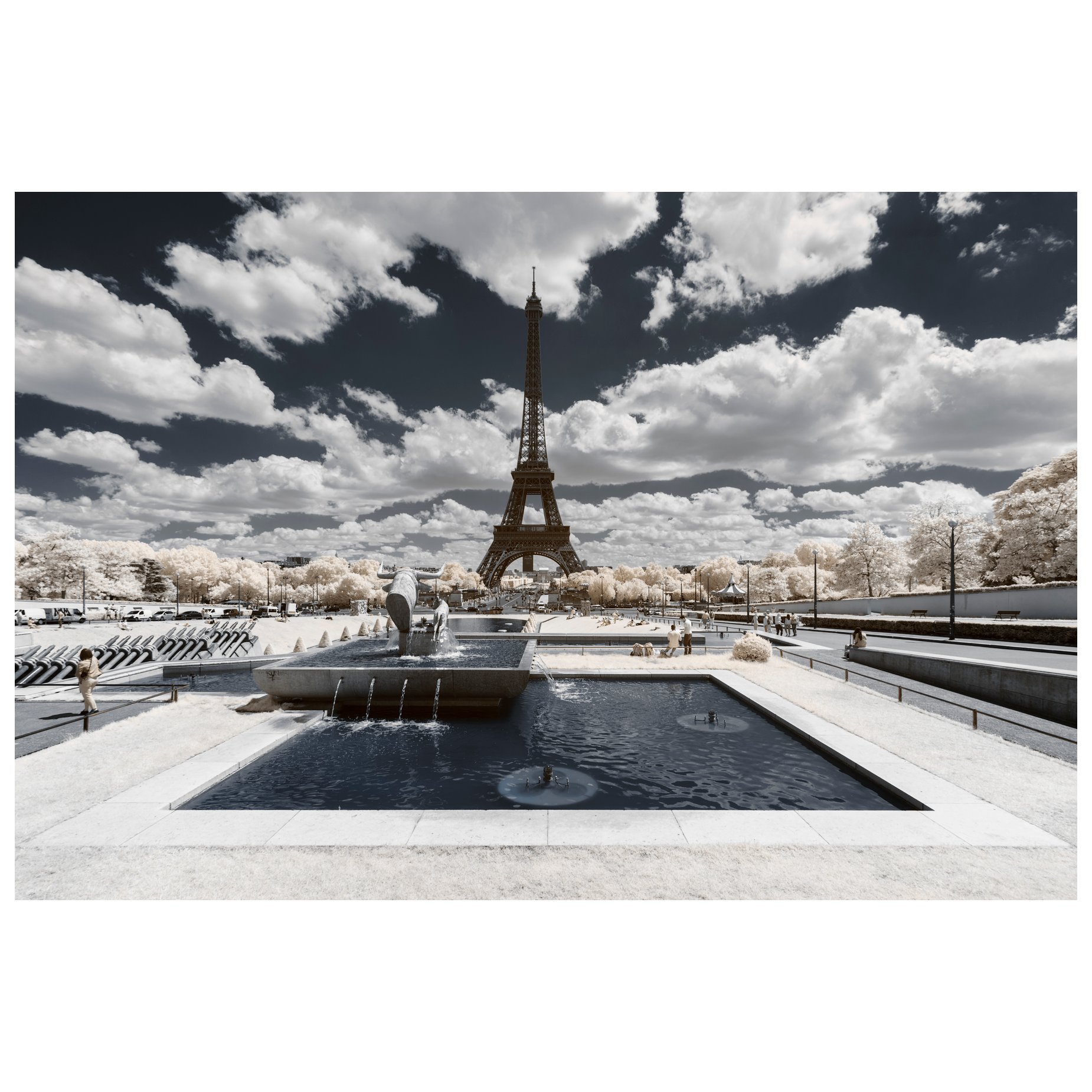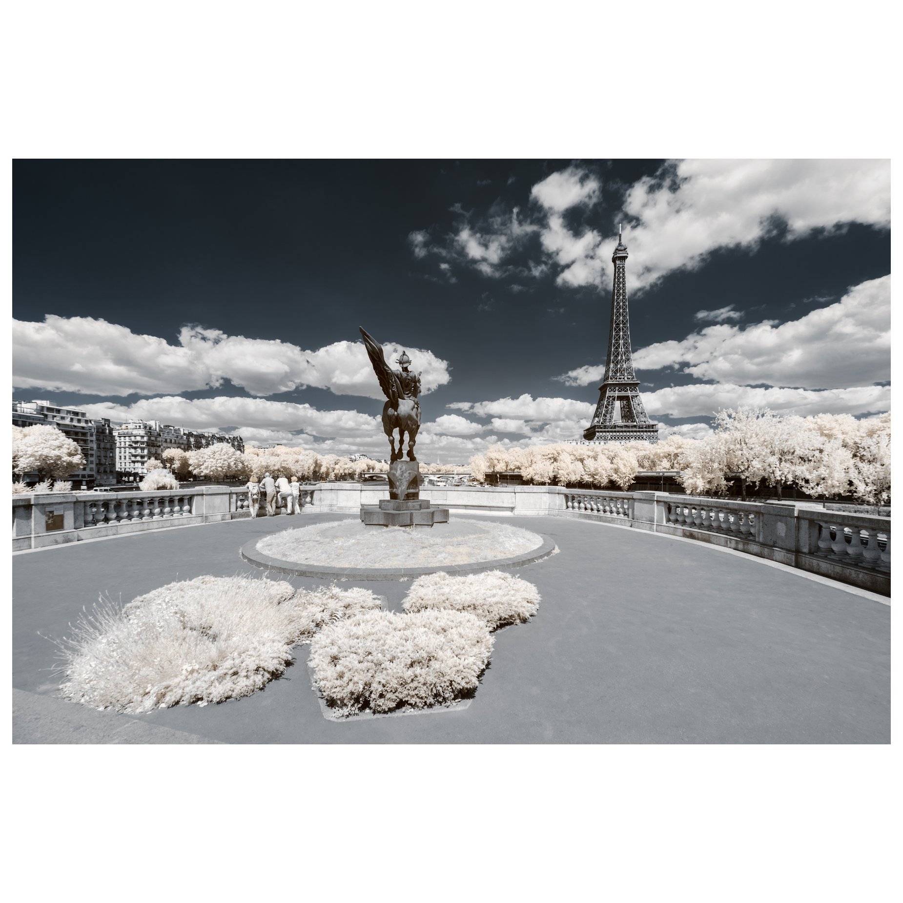 Pour remettre cette nature au premier plan, j’ai voulu la confronter à l’urbanisme à travers la technique de photographie infrarouge. La structure interne des feuilles des arbres, des plantes et des fleurs réfléchie la quasi-totalité du rayonnement infrarouge proche, afin notamment de préserver leur température d’un coup de chaud. En photographie infrarouge, la végétation apparait donc très lumineuse, comme immaculée. Elle vient entourer monuments et espaces publics dans une blancheur onirique.