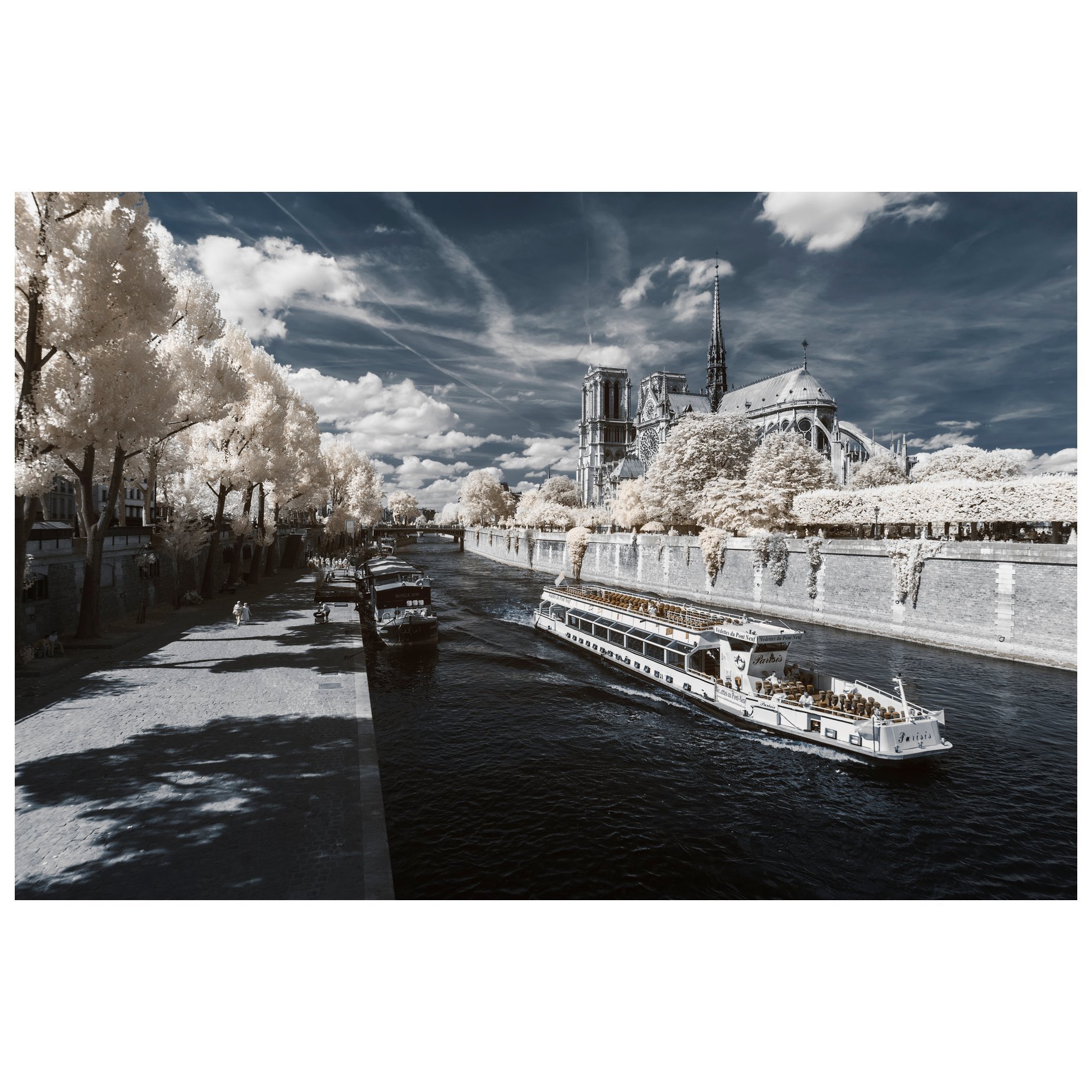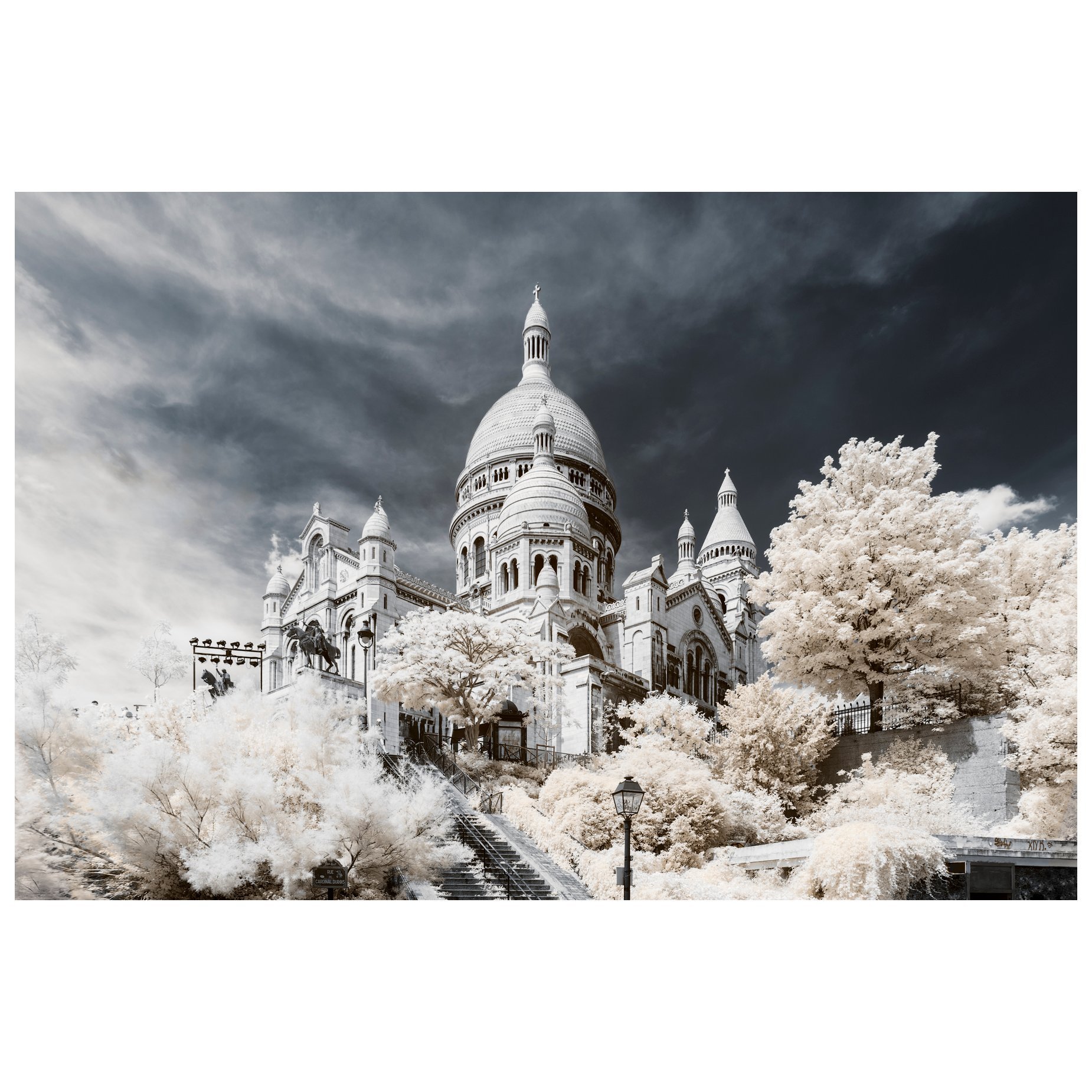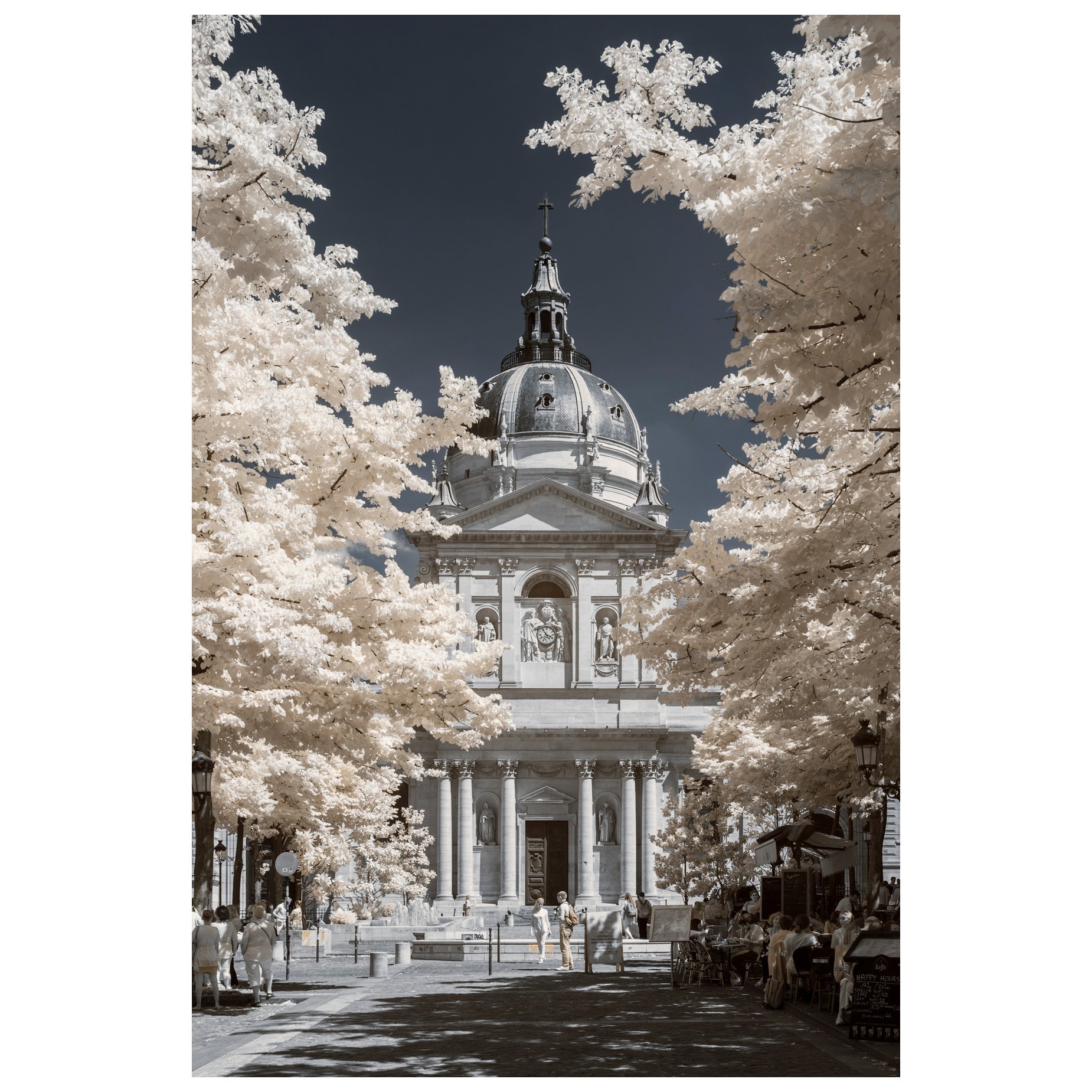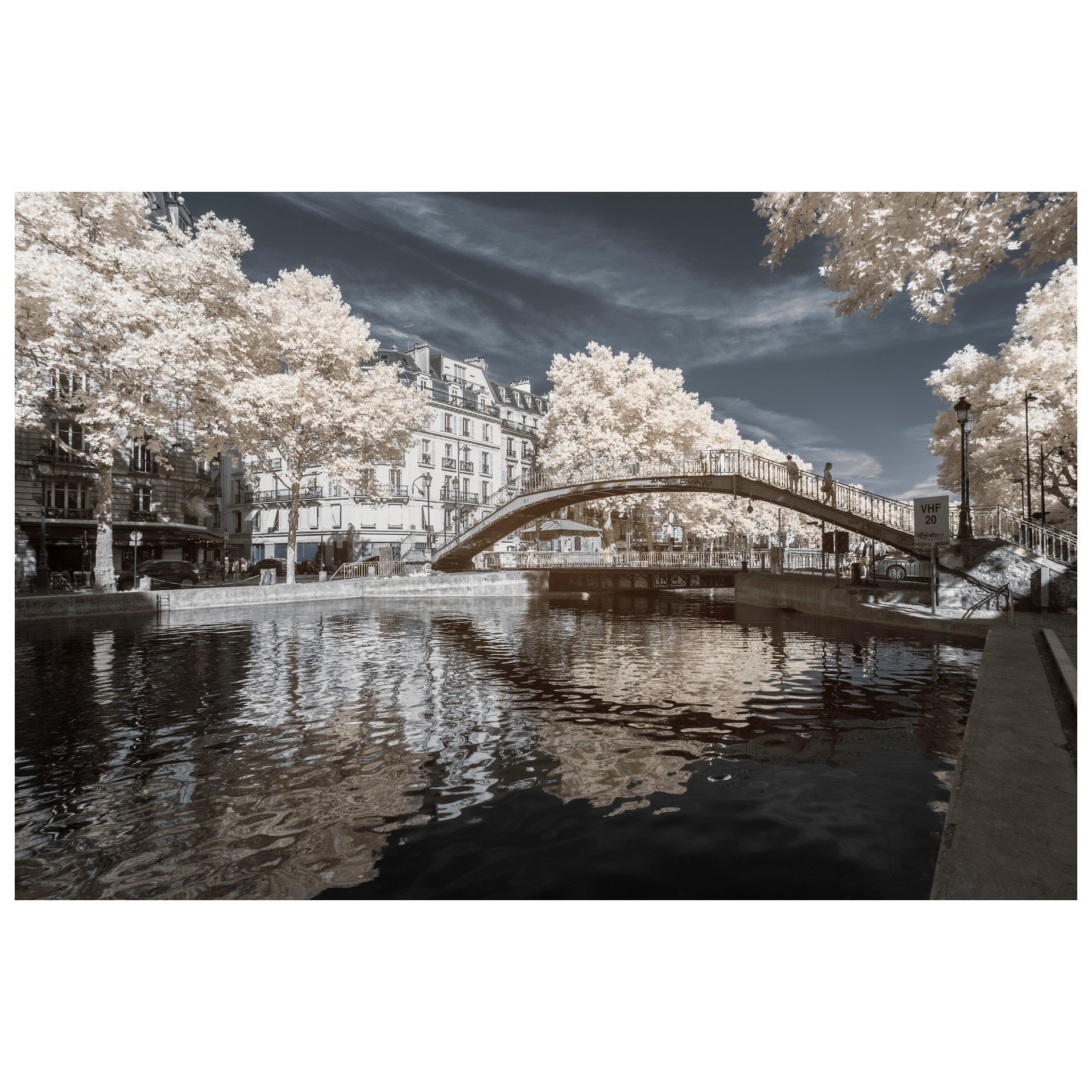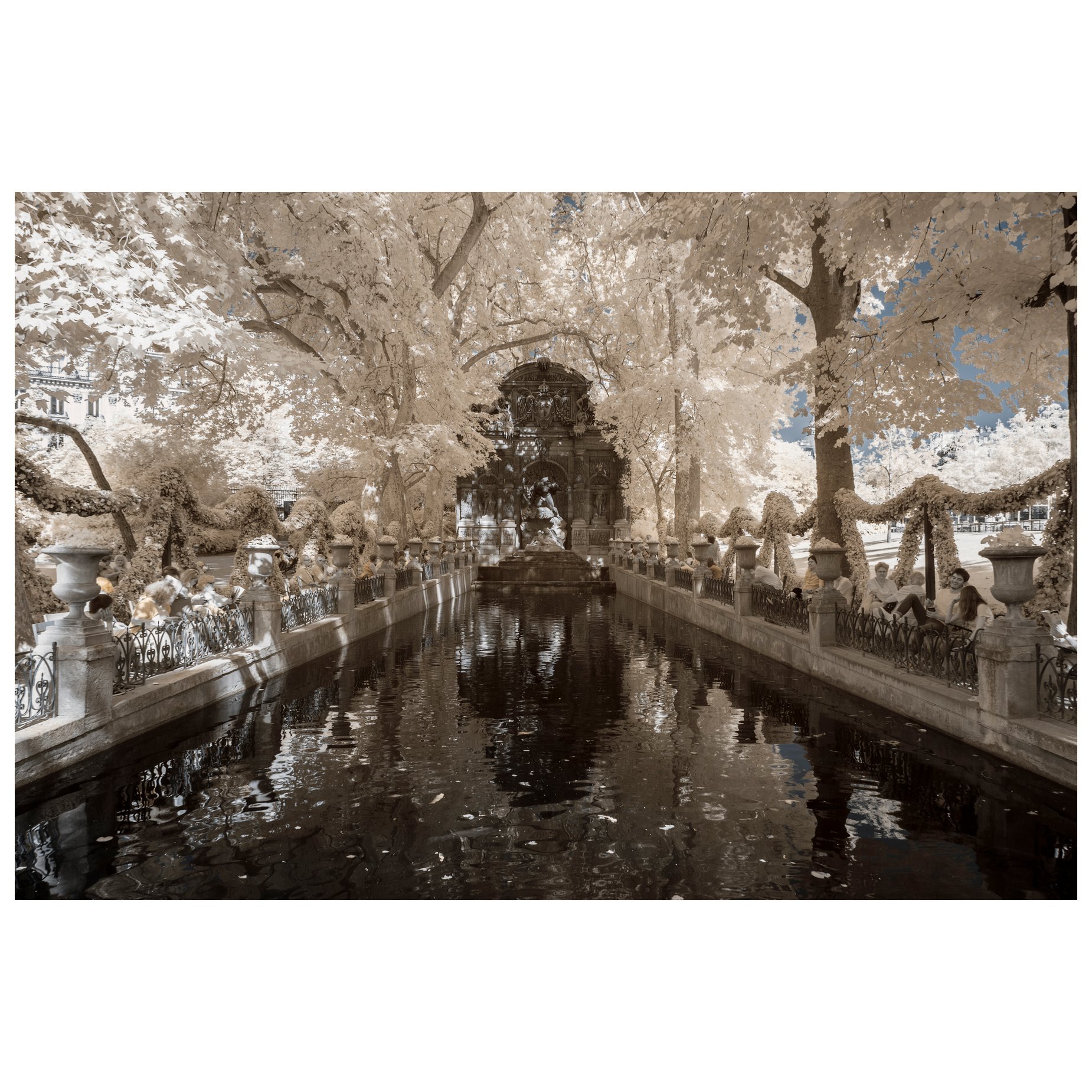 Pour remettre cette nature au premier plan, j’ai voulu la confronter à l’urbanisme à travers la technique de photographie infrarouge. La structure interne des feuilles des arbres, des plantes et des fleurs réfléchie la quasi-totalité du rayonnement infrarouge proche, afin notamment de préserver leur température d’un coup de chaud. En photographie infrarouge, la végétation apparait donc très lumineuse, comme immaculée. Elle vient entourer monuments et espaces publics dans une blancheur onirique.